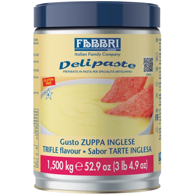 Ароматическая паста Fabbri Delipaste Zuppa Inglese – профессиональный ингредиент от итальянской компании Fabbri, воссоздающий вкус классического итальянского десерта Zuppa Inglese. Этот десерт сочетает в себе ванильный крем, бисквит, пропитанный ликёром, и лёгкие фруктовые нотки.