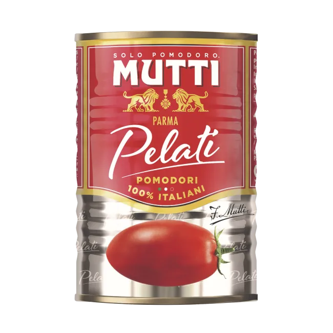 Mutti Peeled Tomatoes — цельные очищенные томаты, собранные в Парме в сезон максимальной зрелости. Благодаря быстрой обработке они сохраняют насыщенный вкус, плотную текстуру и естественный аромат.