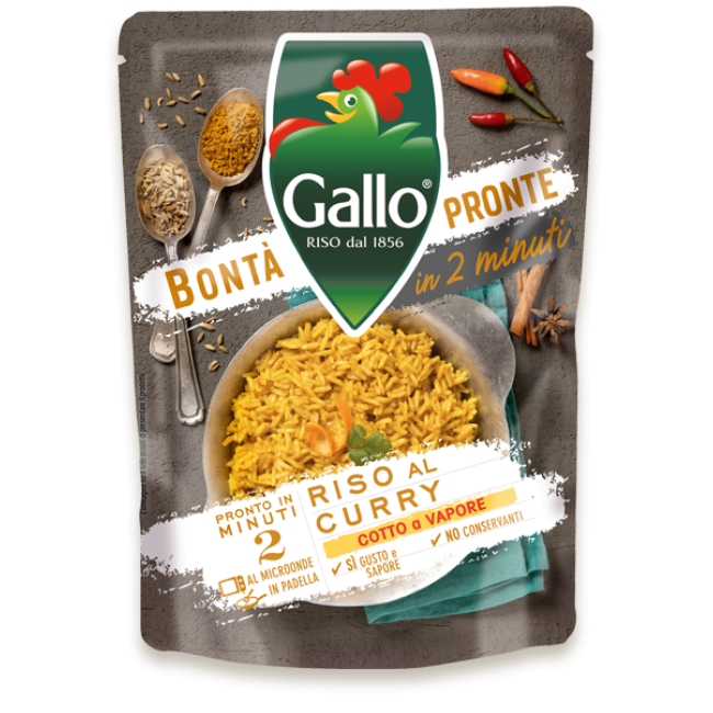 Riso Gallo Curry Rice — это готовое блюдо на основе пропаренного риса с ароматной смесью специй карри. Обладает ярким вкусом с восточными нотками, идеально подходит как самостоятельное блюдо или гарнир. Готовится всего за 2 минуты. Формат 250 г — удобен для быстрого обеда. Без консервантов, приготовлен на пару.