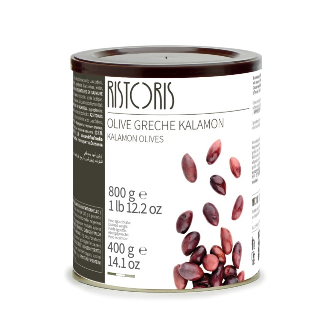 Ristoris Kalamata Whole Olives — цельные оливки сорта Каламата с косточкой. Этот деликатес отличается насыщенным вкусом, тёмным бордовым оттенком и особой ценностью для гурманов.