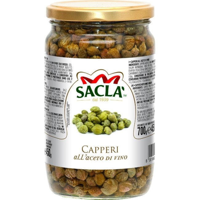 Sacla Capers in Vinegar — это отборные каперсы, собранные вручную и выдержанные в винном уксусе для усиления их натурального вкуса. Каперсы обладают ярким пряным ароматом, пикантной горчинкой и универсальны в использовании: они идеально дополняют мясные и рыбные блюда, пасту, салаты, соусы и закуски. Формат 720 г — это профессиональная упаковка, подходящая для ресторанов, кафе и активного домашнего использования. Продукт не содержит глютен, консервантов и искусственных добавок. Подходит для вегетарианцев.